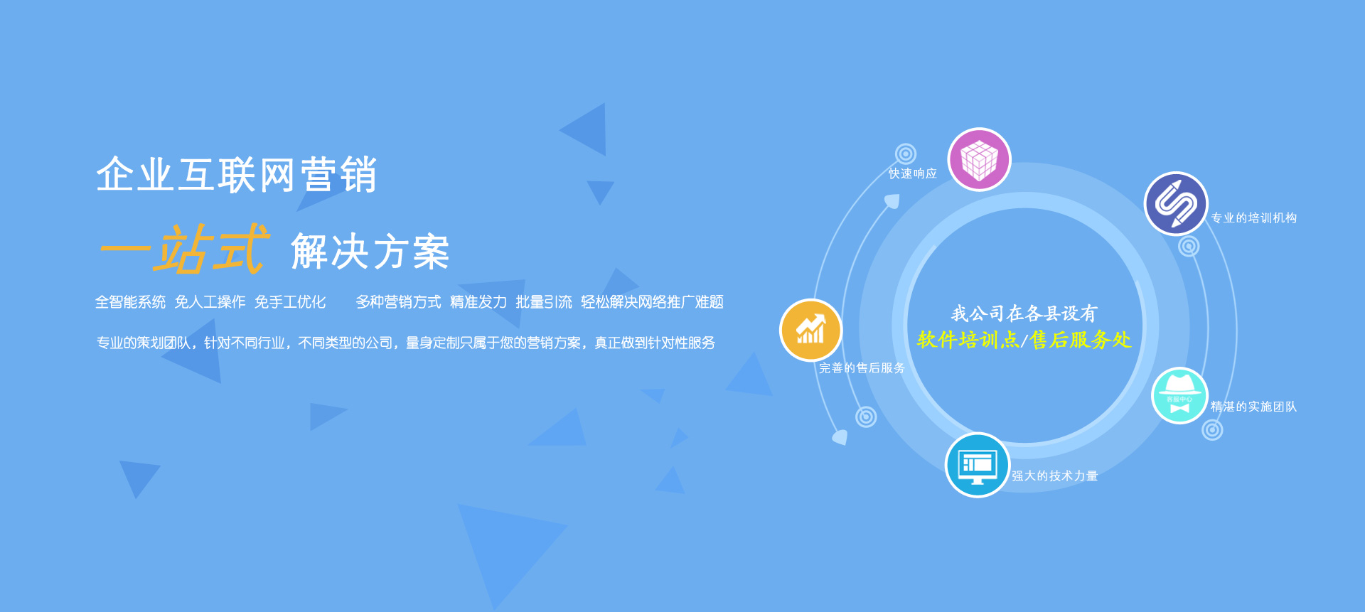 我公司在各縣設(shè)有軟件培訓(xùn)點和售后服務(wù)處。本公司有專業(yè)的培訓(xùn)機構(gòu)、精湛的實施團隊、強大的技術(shù)力量、完善的售后服務(wù)。承諾:“快速響應(yīng),隨叫隨到”。絕不會因我們的原因影響會計人員的結(jié)賬、報表等工作。